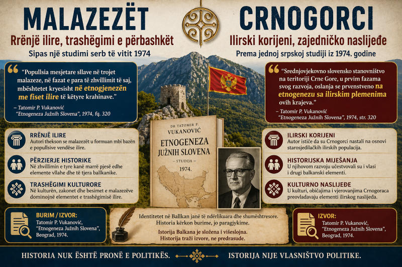 Jedan od takvih izvora jeste studija „Etnogeneza Južnih Slovena” srpskog etnologa Tatomira P. Vukanovića, objavljena 1974. godine u Serbia. U ovom radu autor obrađuje historijsko porijeklo južnoslavenskih naroda, uključujući i Montenegro.